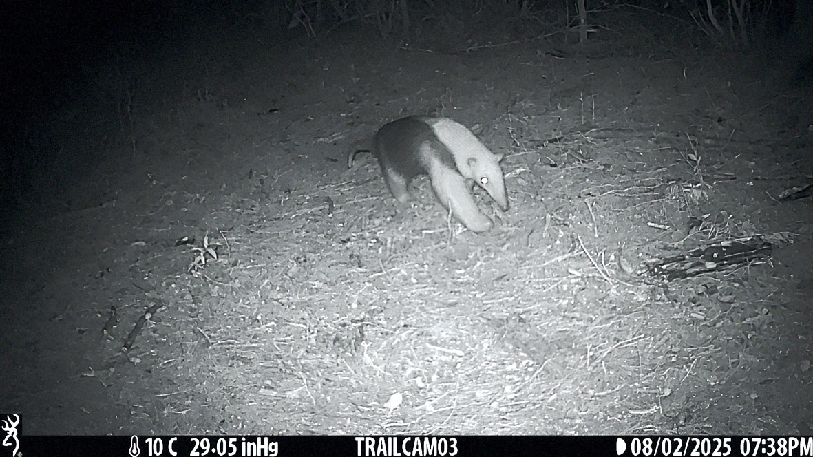 Efectivamente, tuvimos el registro del Tamandua tetradactyla. Para nosotros también fue un hito, sumado a que en 2020 tuvimos el registro, por primera vez, de un tatú rabo molle, algo no tan promocionado como sí pasó en este caso. Se trata de registros nuevos de especies que están en el límite de su distribución sur. Es una responsabilidad grande, junto con una enorme satisfacción, porque cuando se aprecia a estas especies en el área, significa que se trata de un espacio que ellas eligen para estar y transcurrir parte de sus vidas. En el caso del Tamandua tetradactyla, se mueve por áreas de pastizal, matorral y monte. El registro que encontramos en una de las cámaras trampa fue en el monte y tenemos la esperanza que el registro se repita en los próximos meses. A principios de mes levantaremos nuevamente la información de las cámaras. Estamos expectantes porque más importante que el primer registro más aún lo son los siguientes, ya que dan la pauta de que el área está siendo gestionada de buena manera para que los ecosistemas y el hábitat de esas especies se mantengan y ellas eligen este lugar. Estos registros nos dan la pauta del éxito de algunas políticas de conservación. Son una motivación muy grande para nosotros, para el equipo de trabajo, para mí, para los guardaparques, incluso para la gente que trabaja en Salus, en la producción, porque están trabajando en una empresa que cuida la naturaleza y eso es valorado tanto por quienes estamos más en contacto con la naturaleza como por quienes están en contacto con la producción industrial. Estas experiencias exitosas hacen que otras personas que quizás no están vinculadas, que viven en Minas o en el entorno, aprecien la importancia y entiendan la trascendencia de conservar la naturaleza. El Tamandua tetradactyla no es de Salus, es de la naturaleza. Pertenece a la naturaleza y por eso esto nos exige una responsabilidad grande: seguir trabajando en conservación, en convencer a quienes aún no están convencidos, con los vecinos, para que este hábitat que intentamos conservar sea cada vez mayor.